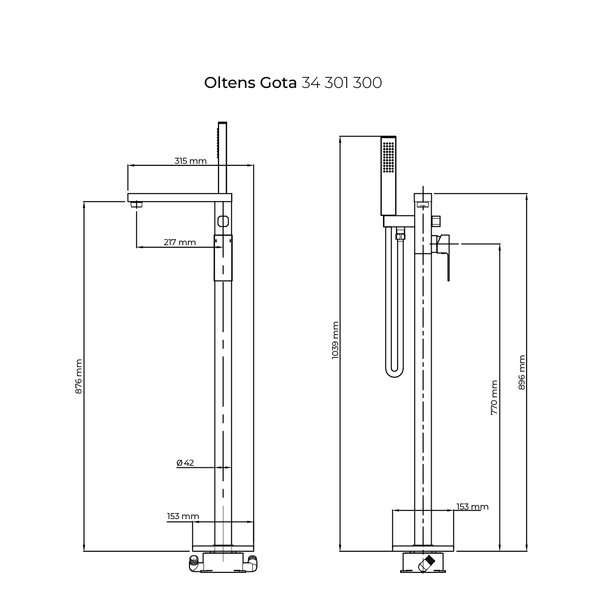 Oltens Gota Badewannen- und Duscharmatur freistehend schwarze Matte 34301300