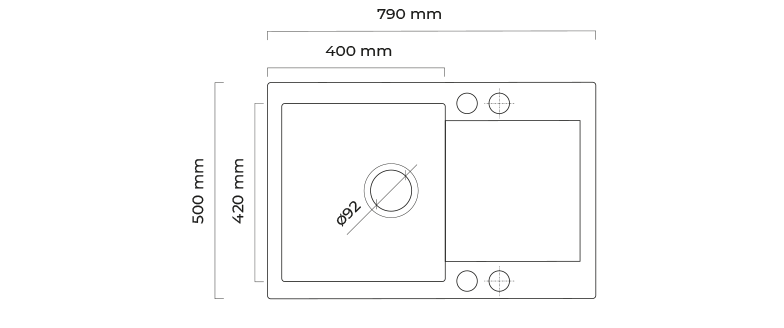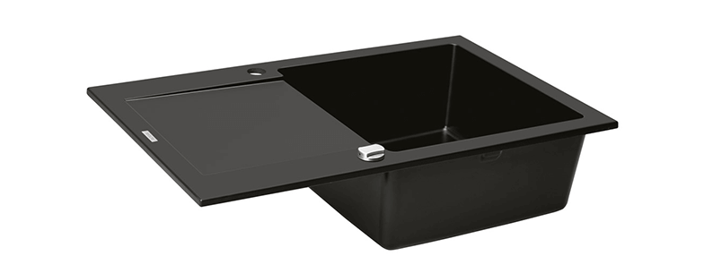Die Spüle ist aus haltbarem Material hergestellt, beständig gegen Flecken, Kratzer und hohe Temperaturen (bis 280 °C).