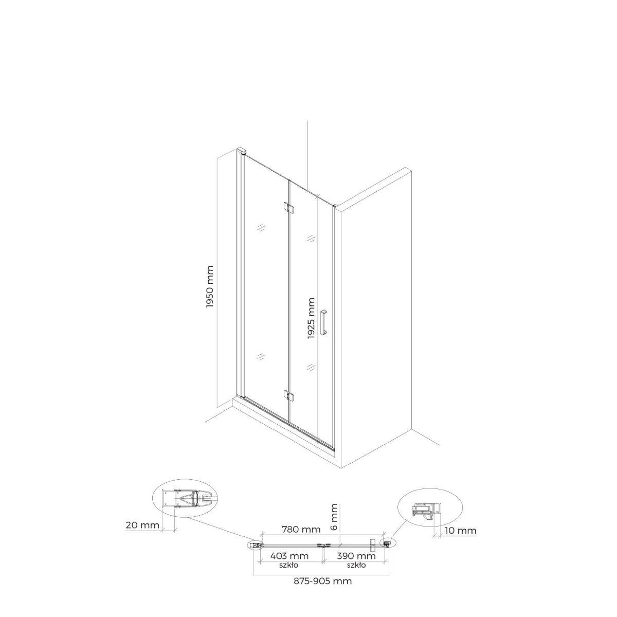 - tatsächliche Abmessungen bei Einbau in eine Nische: 87,5-90,5 cm