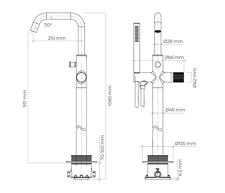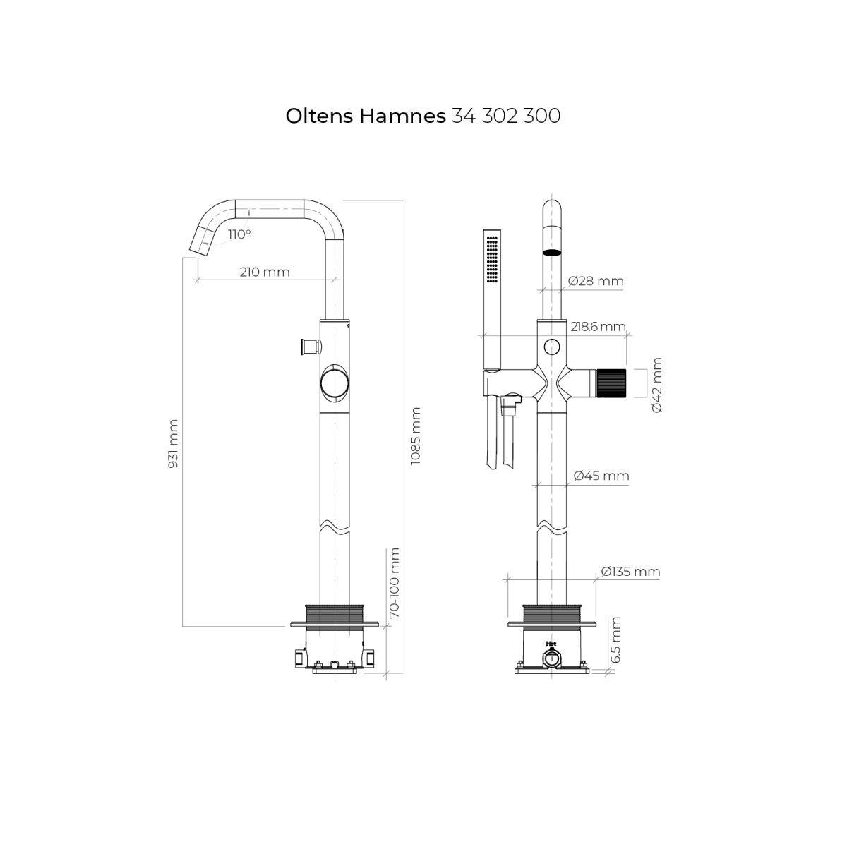 Oltens Hamnes Badewannen- und Duscharmatur freistehend schwarze Matte 34302300