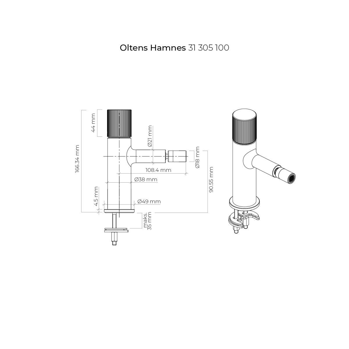 Oltens Hamnes Bidet-Wasserhahn stehend chrom 31305100