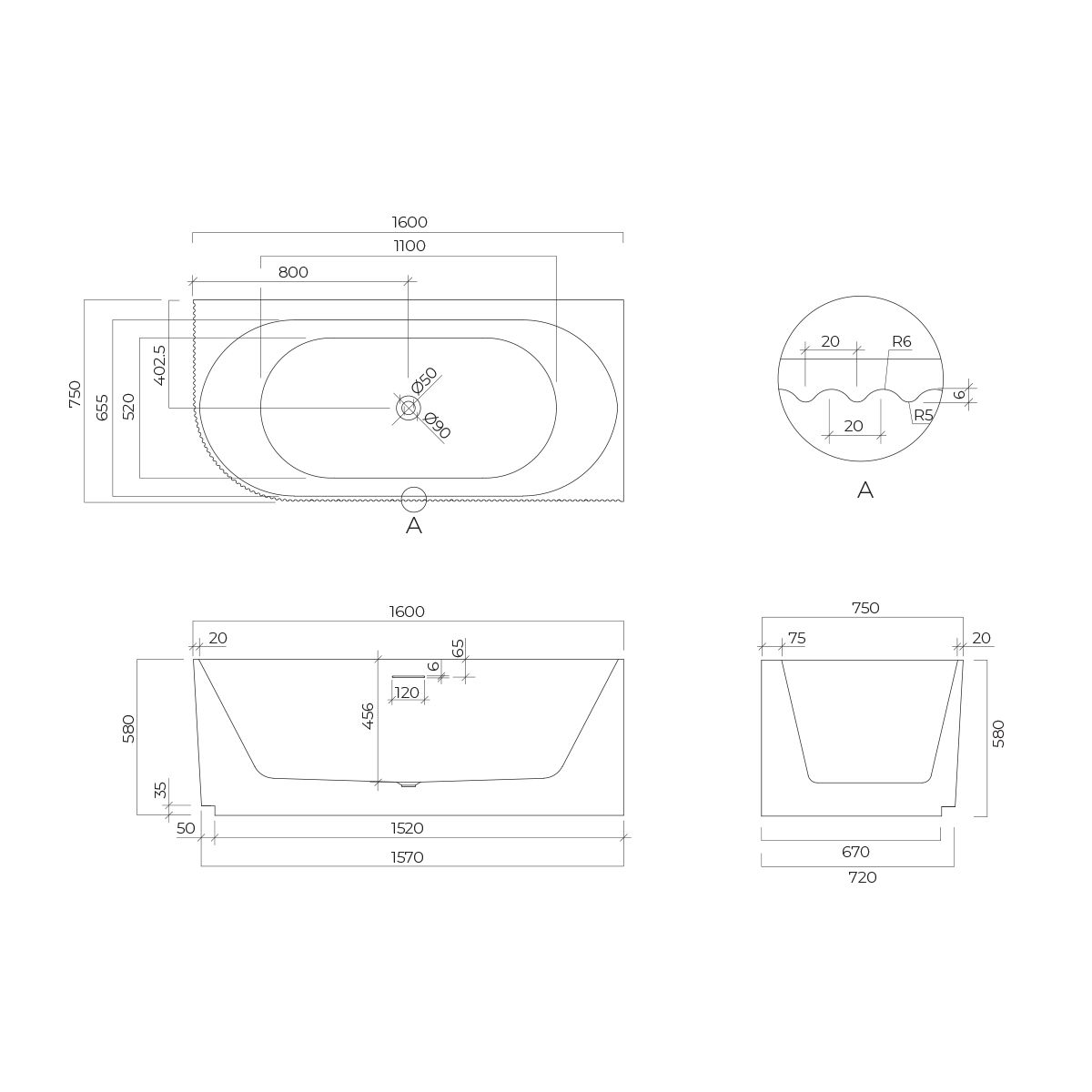 Die Badewannen sind aus widerstandsfähigem Acryl gefertigt und verfügen über einen eingebauten Überlauf mit Abfluss, der unangenehme Gerüche verhindert.