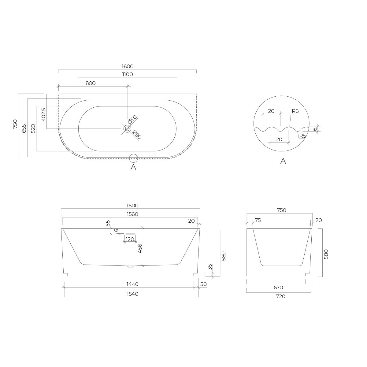 Die Badewannen sind aus widerstandsfähigem Acryl gefertigt und verfügen über einen eingebauten Überlauf mit Abfluss, der unangenehme Gerüche verhindert.