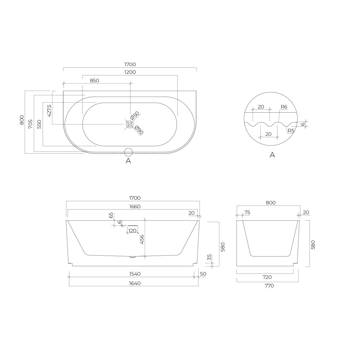 Die Badewannen sind aus widerstandsfähigem Acryl gefertigt und verfügen über einen eingebauten Überlauf mit Abfluss, der unangenehme Gerüche verhindert.