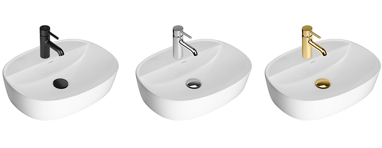 Er wird am besten mit einem verchromten, schwarzen oder goldenen Waschbeckenstöpsel des Typs Klick‑Klack (ohne Überlauf) der Serien Rovde oder Rovde (S) kombiniert.; Zur Verwendung mit Stand‑Armatur