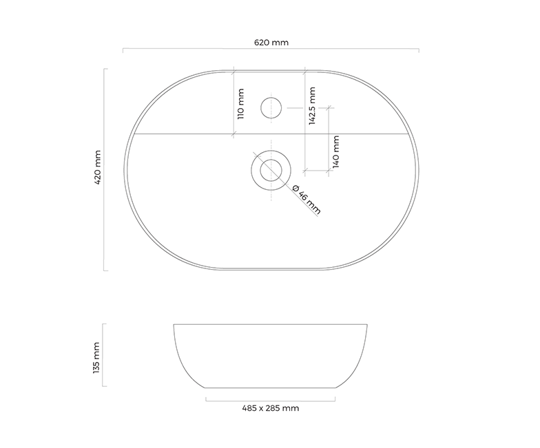 Er wird am besten mit einem verchromten, schwarzen oder goldenen Waschbeckenstöpsel des Typs Klick‑Klack (ohne Überlauf) der Serien Rovde oder Rovde (S) kombiniert.; Zur Verwendung mit Stand‑Armatur