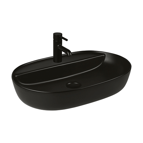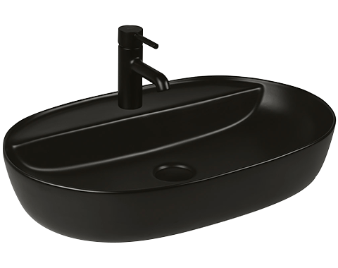 Oltens Hamnes Waschbecken 62x42 cm oval Aufsatzwaschbecken schwarz 41314300