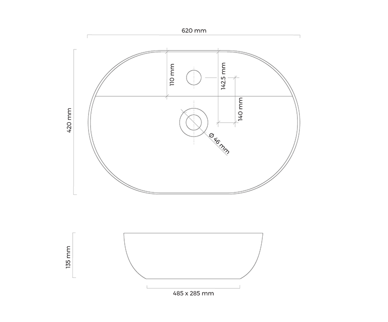 Oltens Hamnes Waschbecken 62x42 cm oval Aufsatzwaschbecken schwarz 41814300