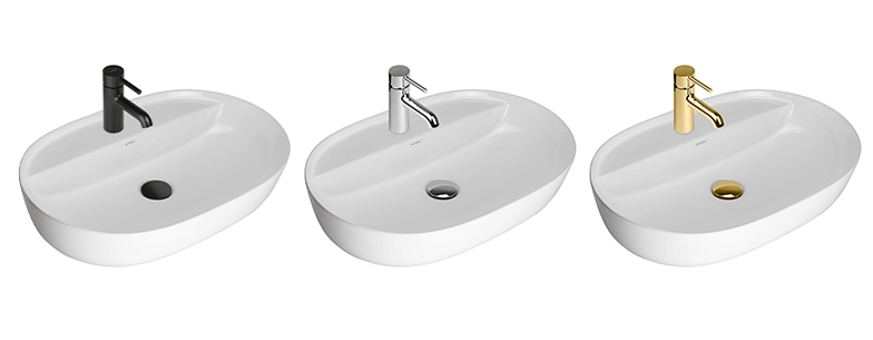 Er wird am besten mit einem verchromten, schwarzen oder goldenen Waschbeckenstöpsel des Typs Klick‑Klack (ohne Überlauf) der Serien Rovde oder Rovde (S) kombiniert.; Zur Verwendung mit Stand‑Armatur