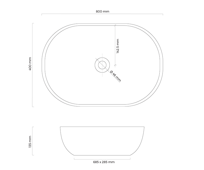 Oltens Hamnes Waschbecken 80x40 cm oval Aufsatzwaschbecken schwarz 40821300
