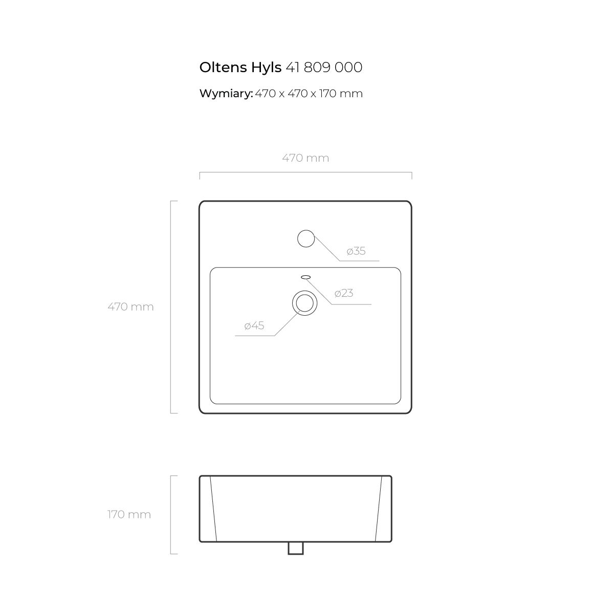 Oltens Hyls Waschbecken 47x47 cm quadratisch Aufsatzwaschbecken weiß 41809000