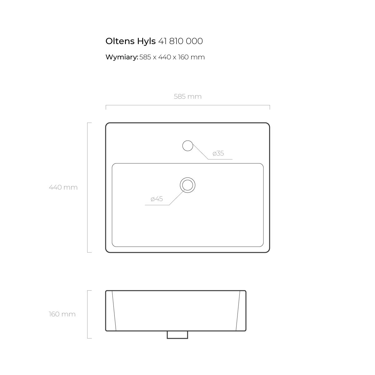 Oltens Hyls Waschbecken 58.5x44 cm rechteckig Aufsatzwaschbecken weiß 41810000