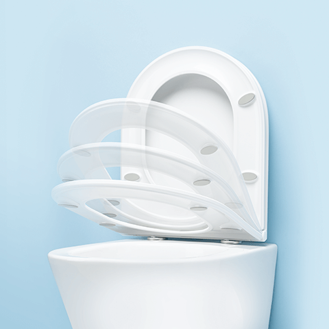 Dank des SoftClose‑Sitzsystems entfällt das unangenehme Zuschlagen des Toilettensitzes in Ihrem Bad.
