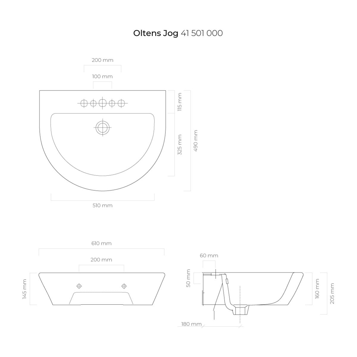 Oltens Jog Waschbecken 61x49 cm halbrund Klassisch weiß 41501000