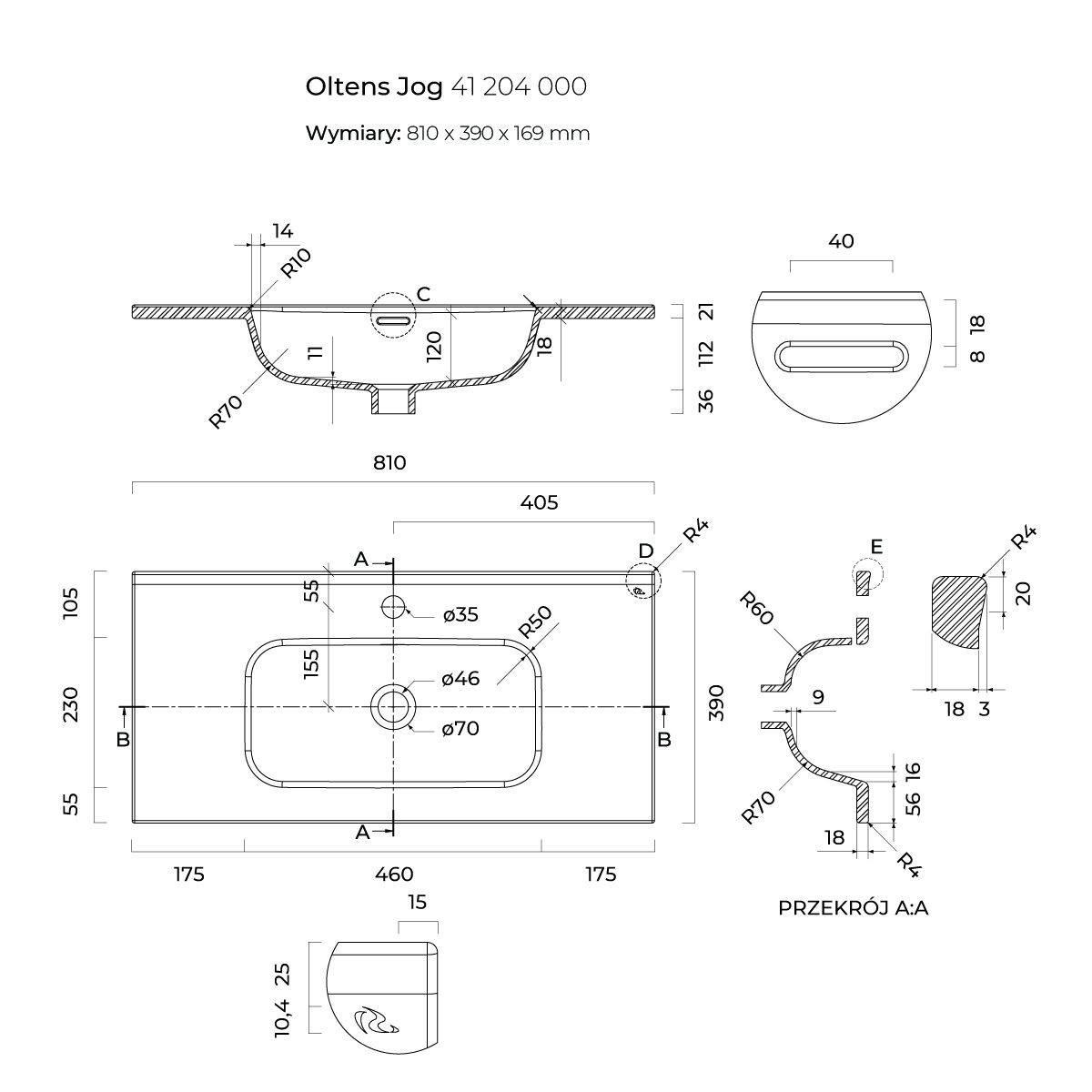 Oltens Jog Waschbecken 81x39 cm rechteckig Möbel weiß 41204000