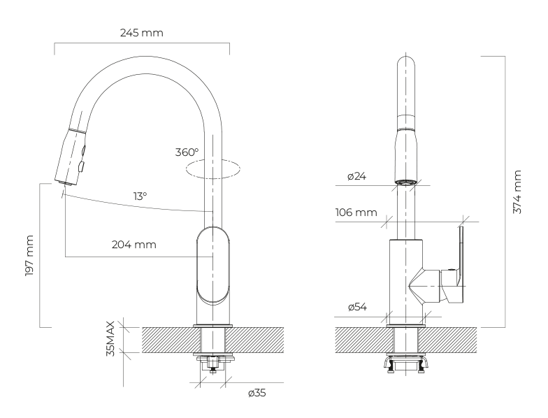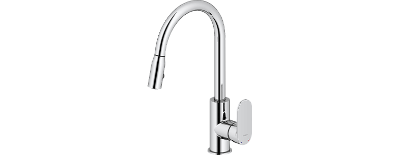 Die markante Form des Auslaufs und die Möglichkeit, den Auslauf um 360° zu drehen, machen die Arbeit in der Küche bequemer und komfortabler.