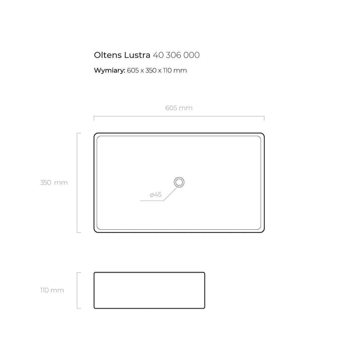 Oltens Lustra Waschbecken 60.5x35 cm rechteckig Aufsatzwaschbecken weiß 40306000