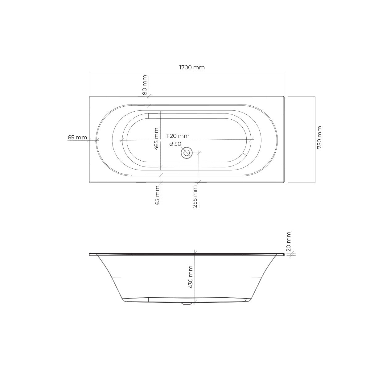 Oltens Lykke Rechteckige Badewanne 170x75 cm weiß 10013000