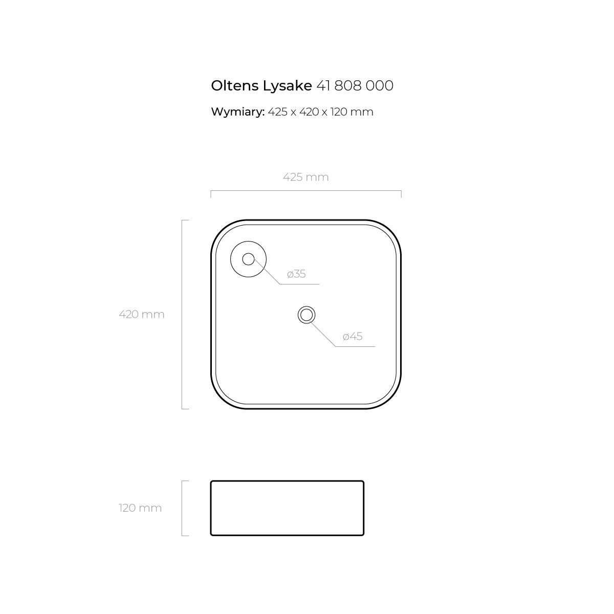 Oltens Lysake Waschbecken 42.5x42.5 cm quadratisch Aufsatzwaschbecken weiß 41808000