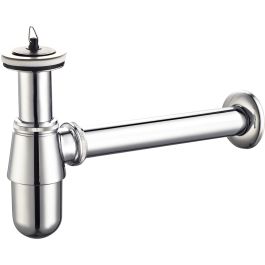 Der Molde-Waschbeckensiphon in Flaschenform wurde aus verchromtem Messing gefertigt und erfüllt damit nicht nur seine Grundfunktion, sondernauch ein interessantes Dekorationselement darstellt. Der Waschbecken-Siphon Molde ist ein Komplettprodukt, das einen Waschbecken-Stopfen und eine verchromte Rosette enthält. Er eignet sich sowohl für den Einbau in einen Schrank als auch für den offenen Raum. Zusammen mit anderen Badaccessoires schafft er einen schönen Raum zum Entspannen.