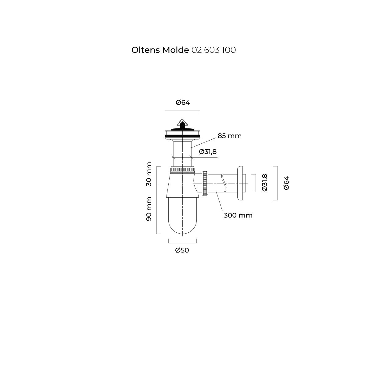 Oltens Molde Siphon für das Waschbecken flaschen chrom 02603100