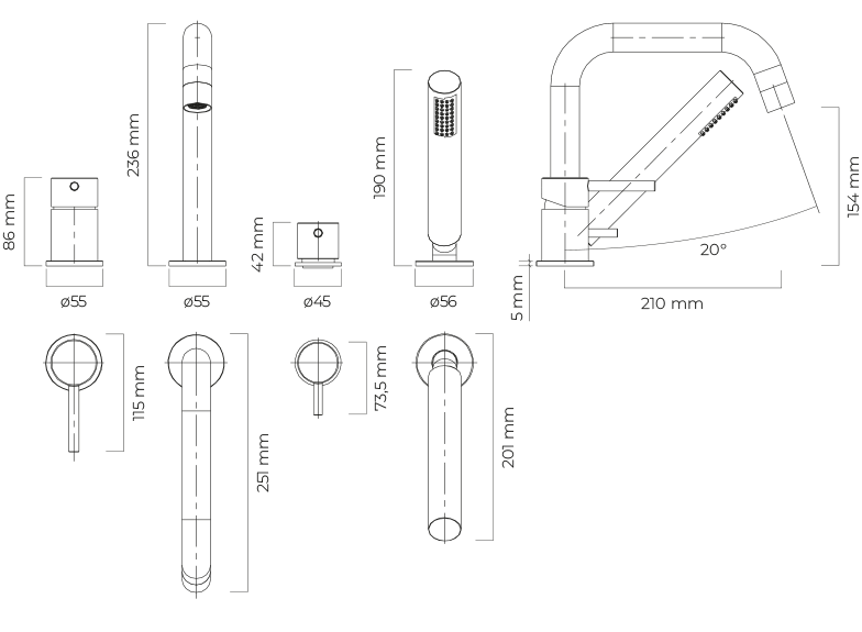 Eine Armatur mit minimalistischem und modernem Stil, die sich ideal für Bäder mit einem solchen Charakter eignet. Die Verwendung der PVD‑Beschichtung garantiert eine schöne Farbe und eine außergewöhnliche Haltbarkeit (höhere Kratz‑ und Abriebfestigkeit) unserer Mischer sowie ihre allergikerfreundlichen und antibakteriellen Eigenschaften