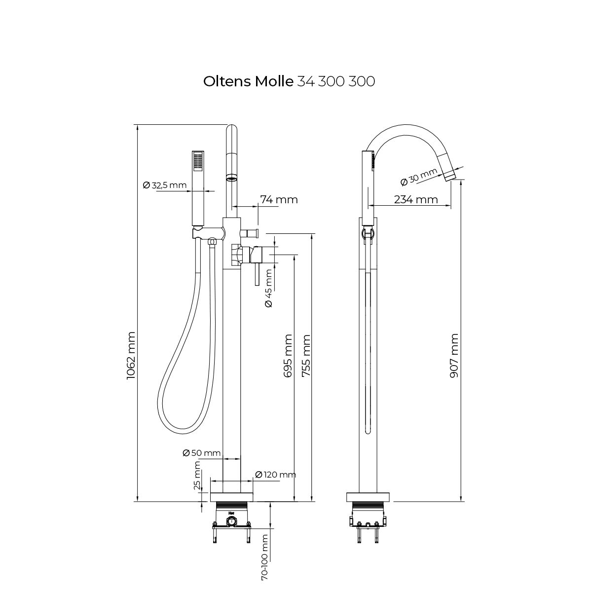 Oltens Molle Badewannen- und Duscharmatur freistehend schwarze Matte 34300300