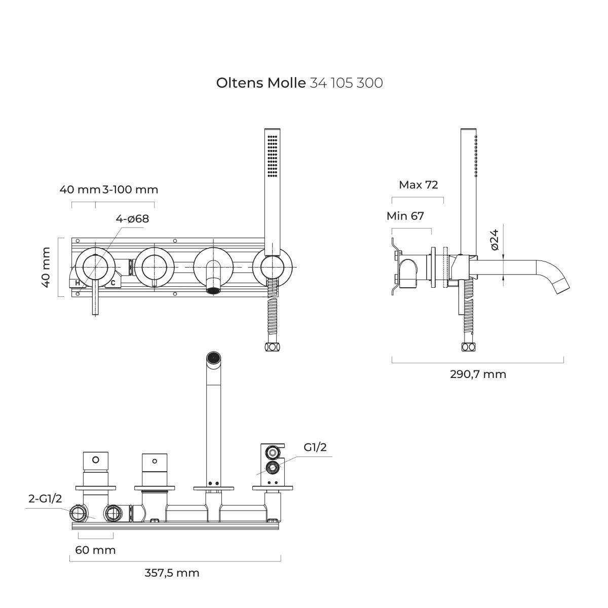 Oltens Molle Badewannen- und Duscharmatur Unterputz schwarze Matte 34105300