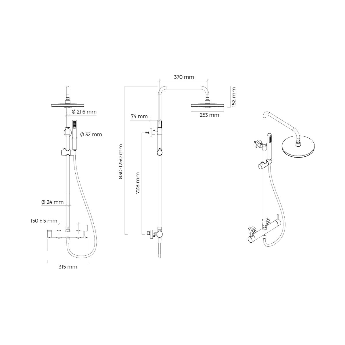 - Im Lieferumfang enthalten: Handbrause, Brauseschlauch, Kopfbrause, Duscharmatur, Duschstange
