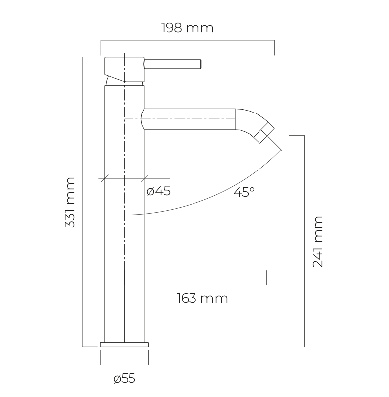 Eine Armatur mit minimalistischem und modernem Stil, die sich ideal für Bäder mit einem solchen Charakter eignet. Die Armatur ist mit einem keramischen Kopf ausgestattet, dank dem sie während der gesamten Nutzungsdauer präzise arbeitet.
