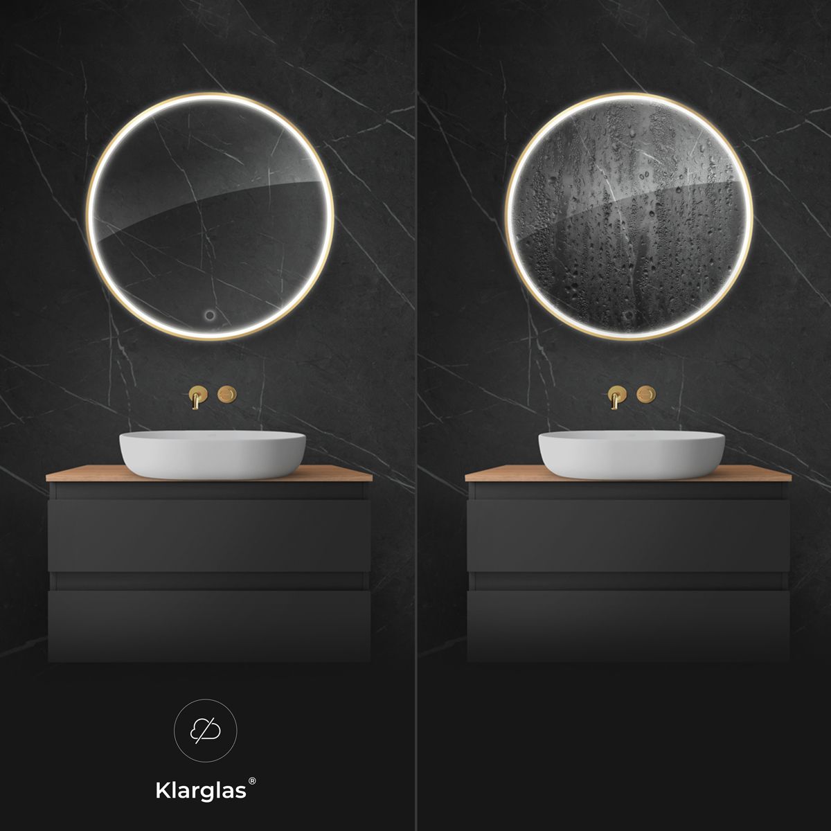 Oltens Nordlis Spiegel 100x100 cm rund mit Beleuchtung mit Spiegelheizung gold 64102800