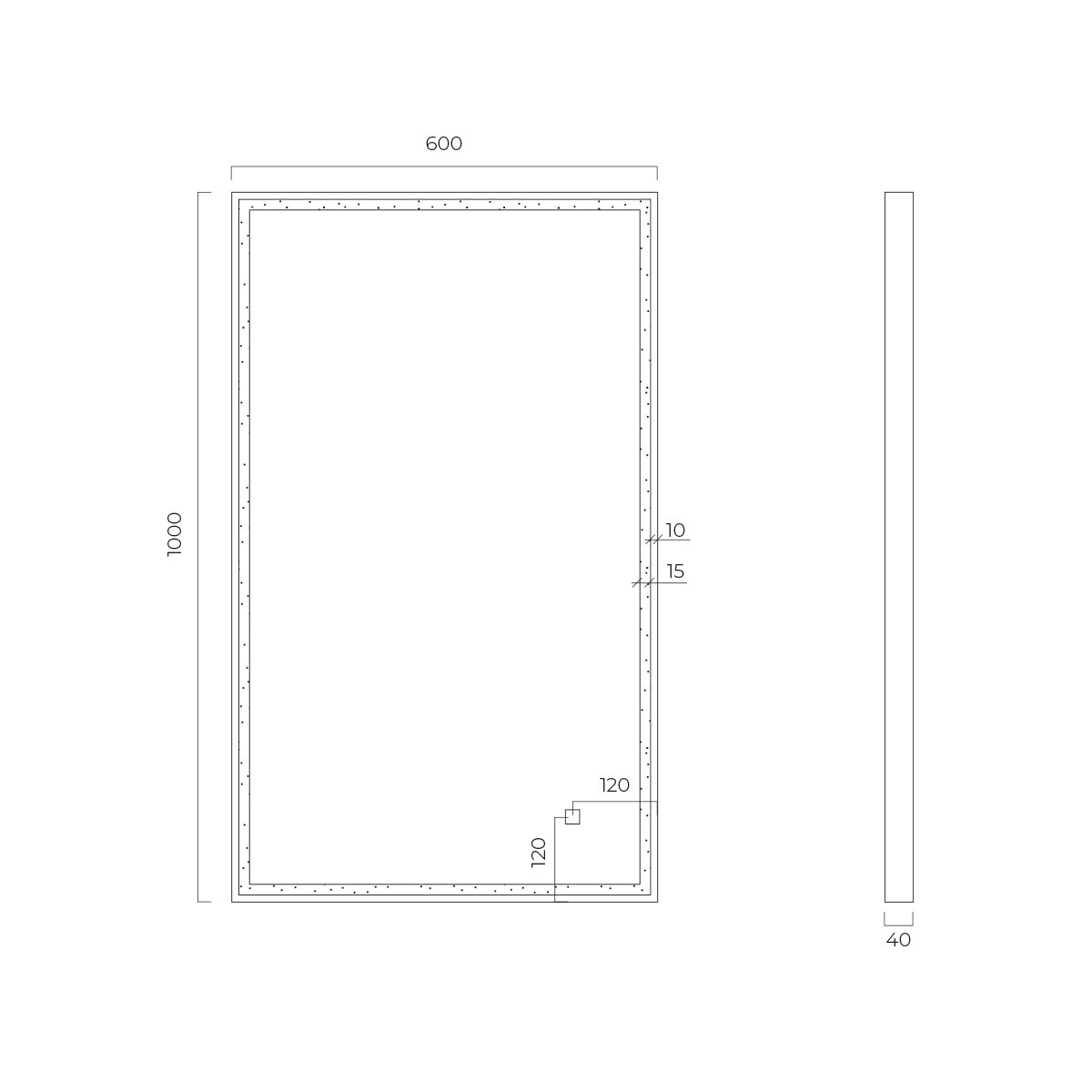 - Beleuchtung in Form eines 1,5 cm breiten Streifens an der Vorderseite des Spiegels