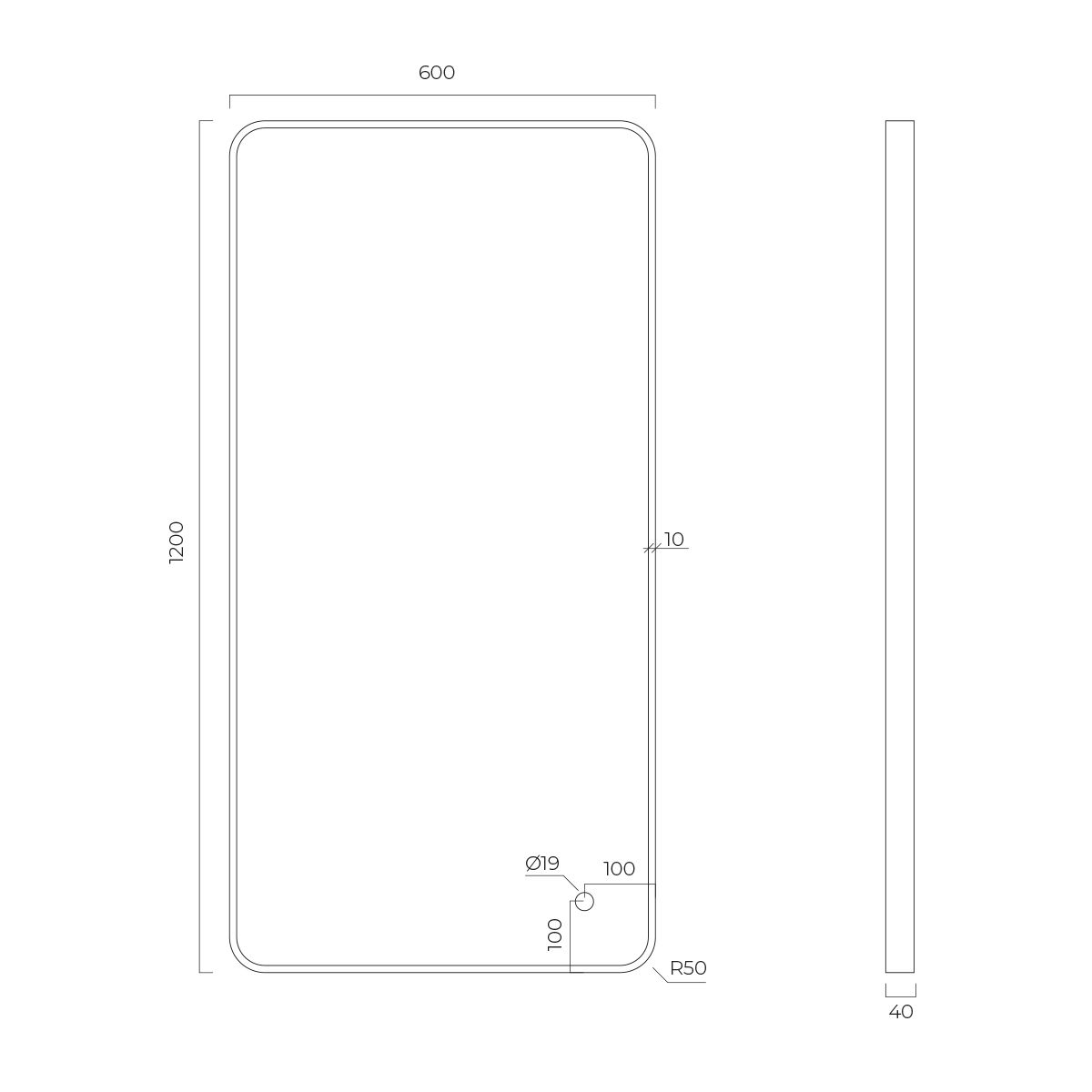 - Beleuchtung in Form eines 1,5 cm breiten Streifens an der Vorderseite des Spiegels