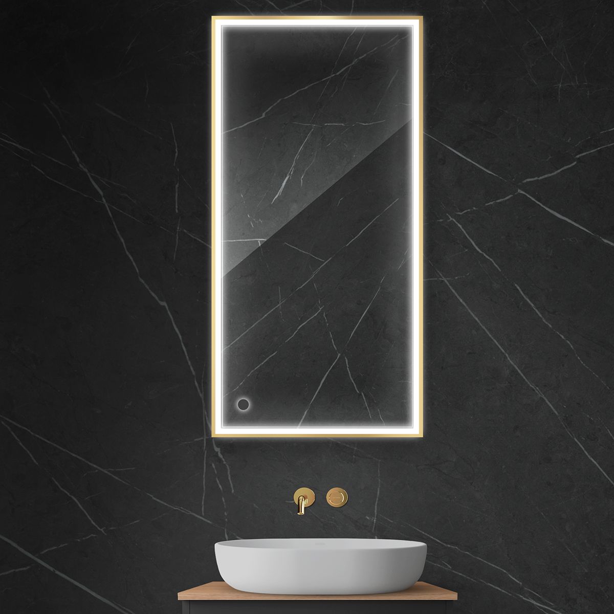 Oltens Nordlis Spiegel 60x120 cm rechteckig mit Beleuchtung mit Spiegelheizung gold 64107800