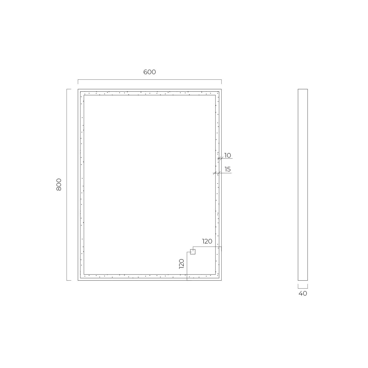 - Beleuchtung in Form eines 1,5 cm breiten Streifens an der Vorderseite des Spiegels
