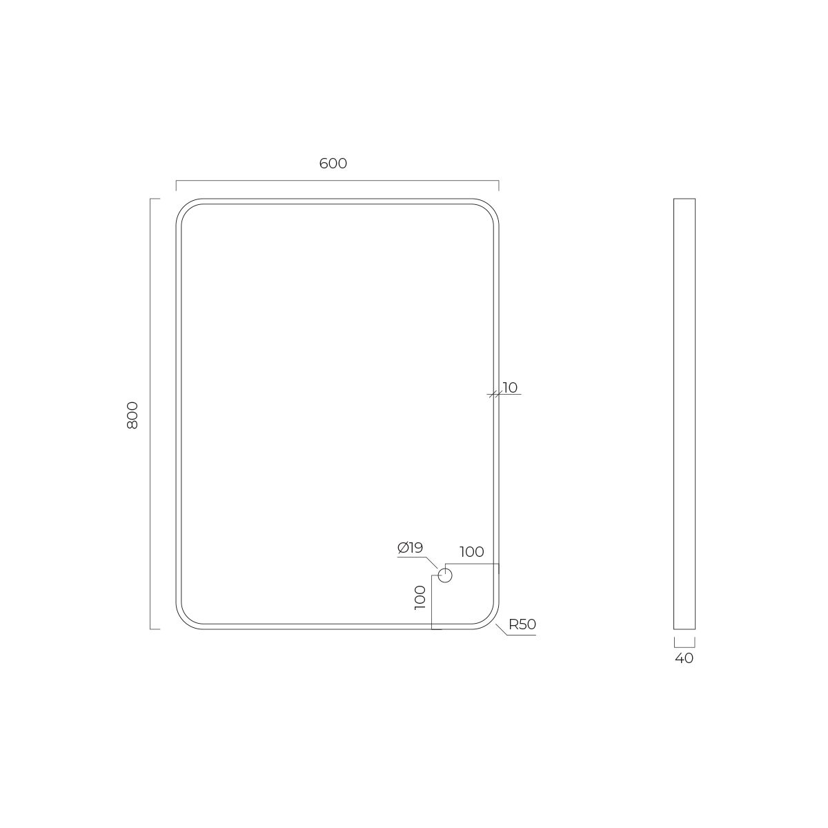- Beleuchtung in Form eines 1,5 cm breiten Streifens an der Vorderseite des Spiegels