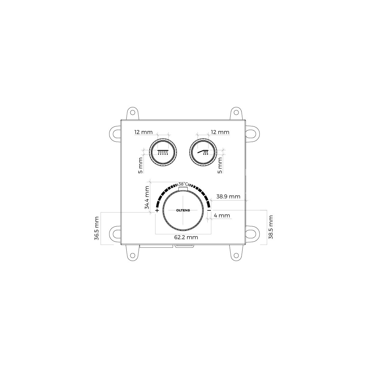 Die Unterputz-Thermostatarmatur Onega von Oltens steuert über Funktionstasten zwei Wasserausgänge. Die Tasten verfügen zusätzlich über eine Funktion zur Steuerung des Wasserflusses, sodass Sie den Wasserverbrauch reduzieren können. Benutzer können den gewünschten Duscheffekt auswählen, indem sie einfach auf die Steuertaste klicken und den Wasserfluss erhöhen/verringern. Durch Drücken beider Tasten können Sie gleichzeitig beide Funktionen (z. B. Regendusche und Handbrause) genießen. Dank des Thermostatkopfes der Marke Sedal können Benutzer eine Dusche mit konstanter Wassertemperatur genießen. Die Armaturen der Serie Onega sind mit runden und eckigen Frontabdeckungen erhältlich, die der Benutzer so auswählen kann, dass sie am besten zu seinem Badezimmer passen.