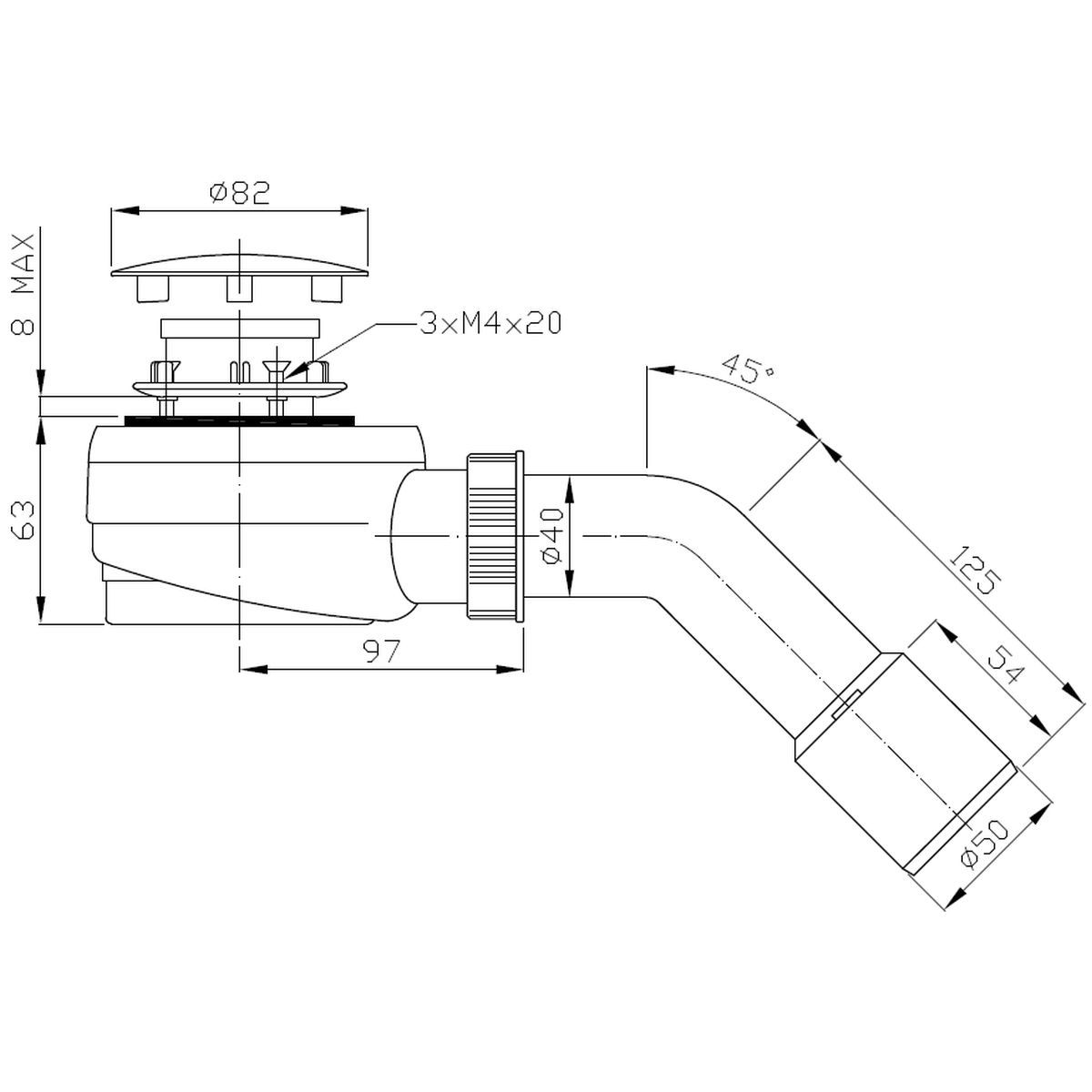 Siphon für Duschwannen, aus weißem Kunststoff für Duschwannen mit 50 mm Ablauf, hohe Leistung, Durchfluss 54 l/min. Ausgestattet mit einer ästhetischen 2 mm dicken Stahlabdeckung mit 8 Auflagepunkten, die eine hohe Belastbarkeit gewährleistet.