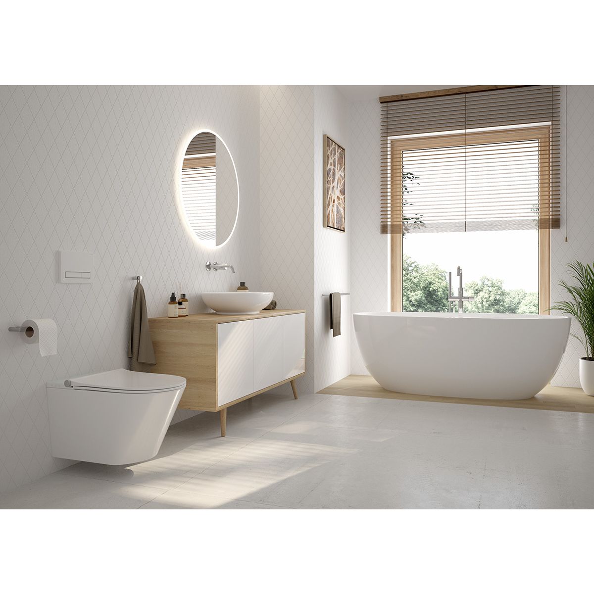 Bei der Planung aller Elemente der Kollektion haben wir auf einen angemessenen Preis und Systeme geachtet, die helfen, den Wasser‑ und Energieverbrauch zu kontrollieren, wobei wir auch die ästhetische Ausführung nicht vergessen haben. Alle Elemente sind perfekt aufeinander abgestimmt. Ein Waschbecken mit einer ovalen Form, weshalb es eine gute Idee ist, es in einem Badezimmer zu verwenden, in dem solche Formen dominieren