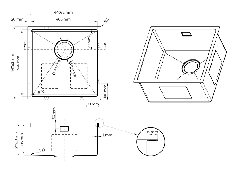 Die Oberfläche der Spüle fühlt sich angenehm an, lässt sich leicht reinigen, ist resistent gegen chemische Präparate und verfärbt sich nicht.