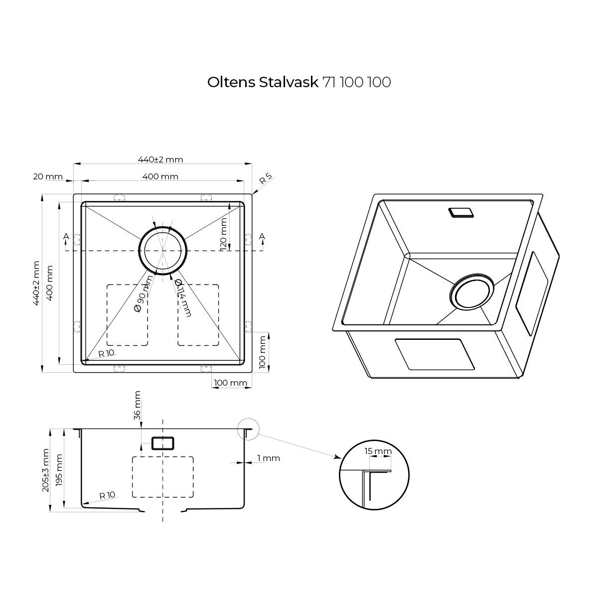Oltens Stalvask Stahlspüle 44x44 cm stahl 71100100