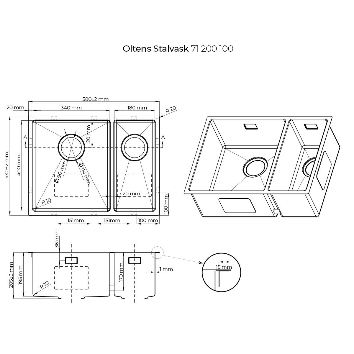 Oltens Stalvask Stahlspüle 58x44 cm stahl 71200100