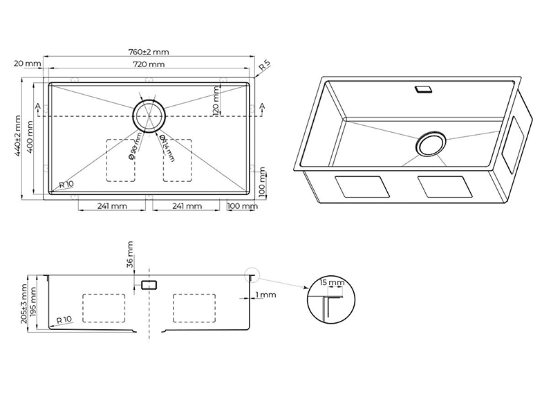 Die Oberfläche der Spüle fühlt sich matt an, lässt sich leicht reinigen, ist unempfindlich gegenüber chemischen Mitteln, und die Struktur verfärbt sich nicht.