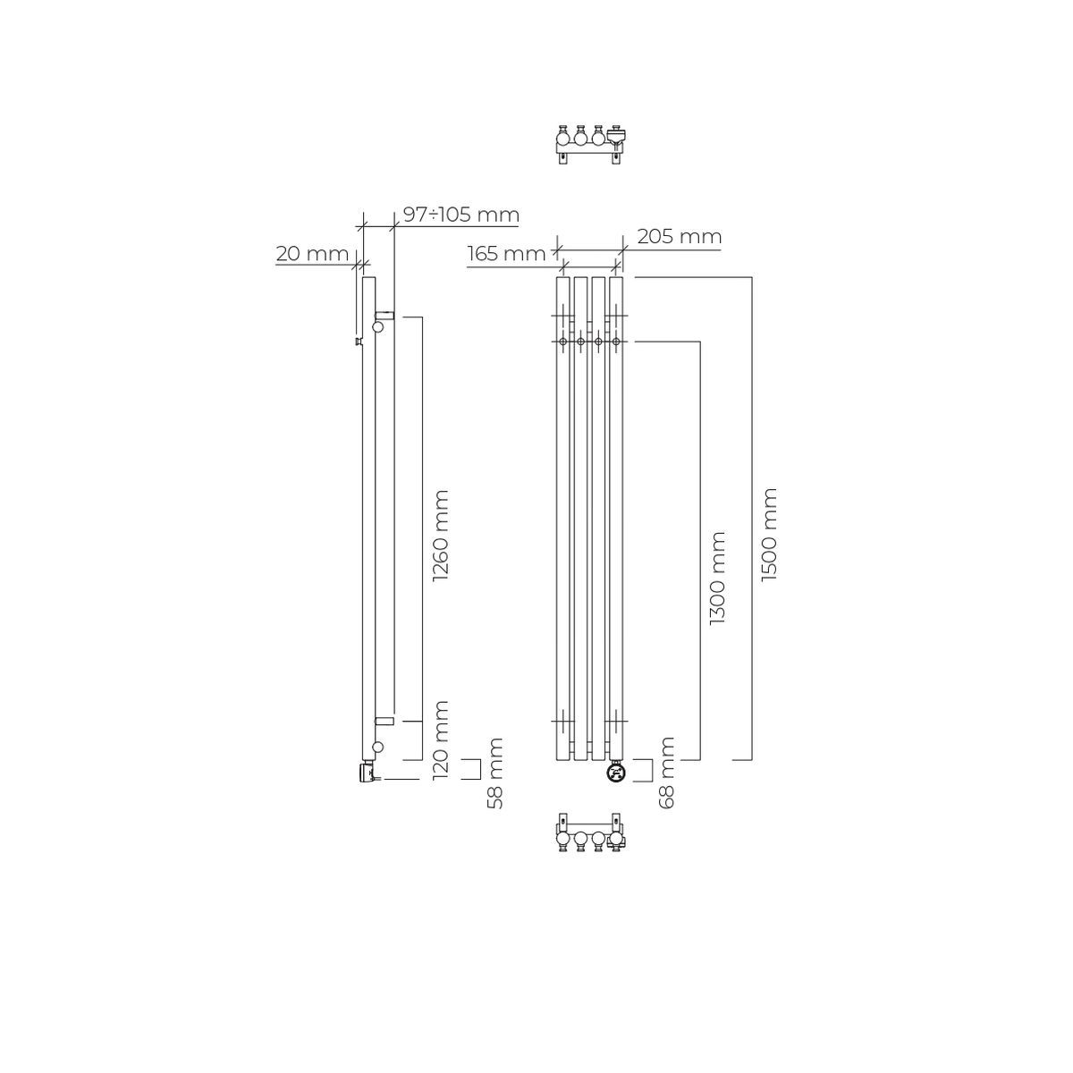Oltens Stang Elektrischer Heizkörper 150x20.5 cm 55120610