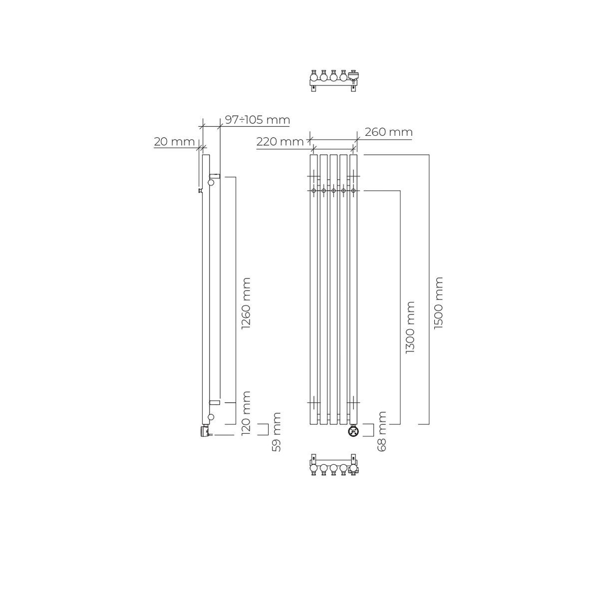 Oltens Stang Elektrischer Heizkörper 150x26 cm weiß 55121000