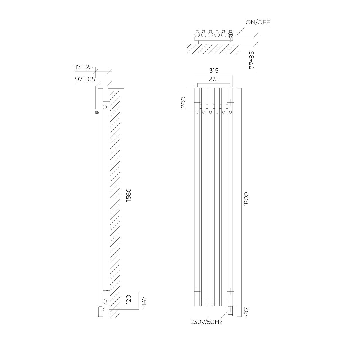 Oltens Stang Elektrischer Heizkörper 180x31.5 cm 55118610