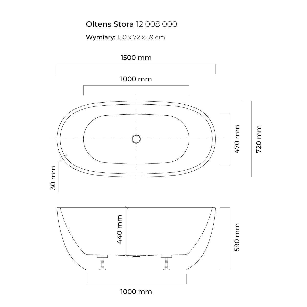 Oltens Stora Freistehende Badewanne 150x72 cm oval weiß 12008000