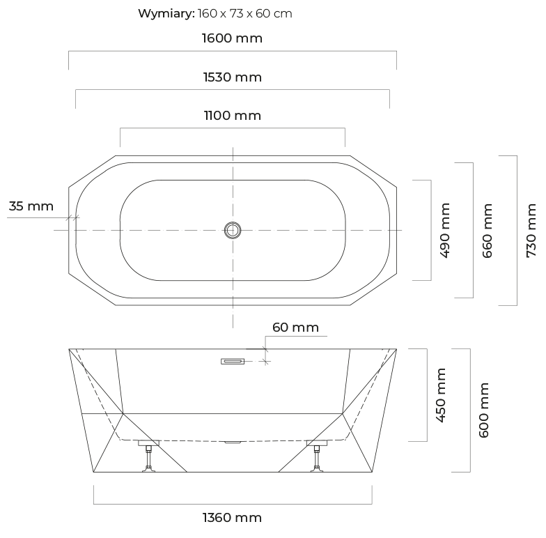 Die stromlinienförmige Form, die abgerundeten Kanten und der konturierte Innenraum machen jedes Bad äußerst komfortabel. Das Ganze ist aus weißem, mit Laminat verstärktem Acryl hergestellt, so dass die Badewanne Ihnen viele Jahre lang dienen wird und leicht sauber zu halten ist. Der Abfluss mit Klick‑Klack‑Stopfen wurde an der kurzen Seite angebracht.