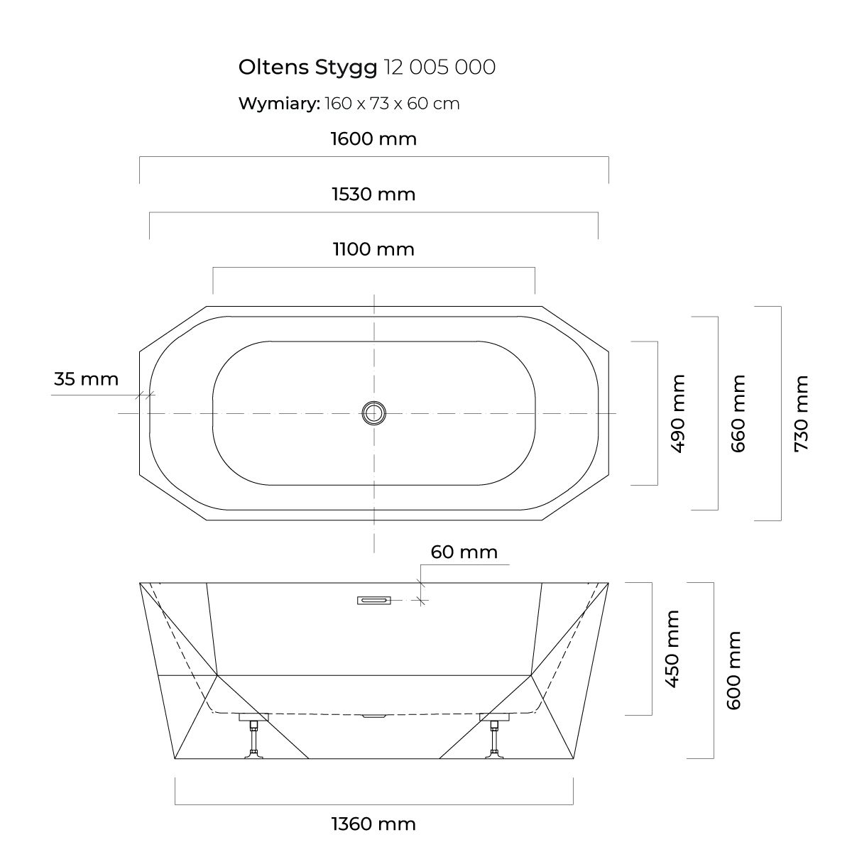 Träumen Sie von einem Moment der Entspannung nach einem anstrengenden Tag? Es gibt nichts Besseres als ein schönes, warmes Bad. Ovale freistehende Badewanne Stygg von Oltens sorgt für Entspannung auf höchstem Niveau. Das leichte skandinavische Design, die schlichte Form und die Textur werden jeden begeistern, der sein Bad mit einer funktionalen Badewanne ausstatten möchte, die auch eine dekorative Rolle spielt.