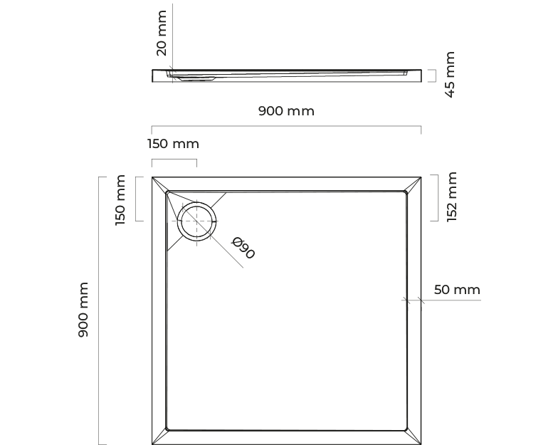 Die Duschwanne ist eine hervorragende Grundlage für die Einrichtung einer Duschkabine 90x90 cm. Das Modell kann direkt auf den Boden gestellt werden, lässt sich aber aufgrund seiner geringen Gesamthöhe auch in den Boden versenken und bietet so einen schwellenfreien Zugang zum Badebereich.
